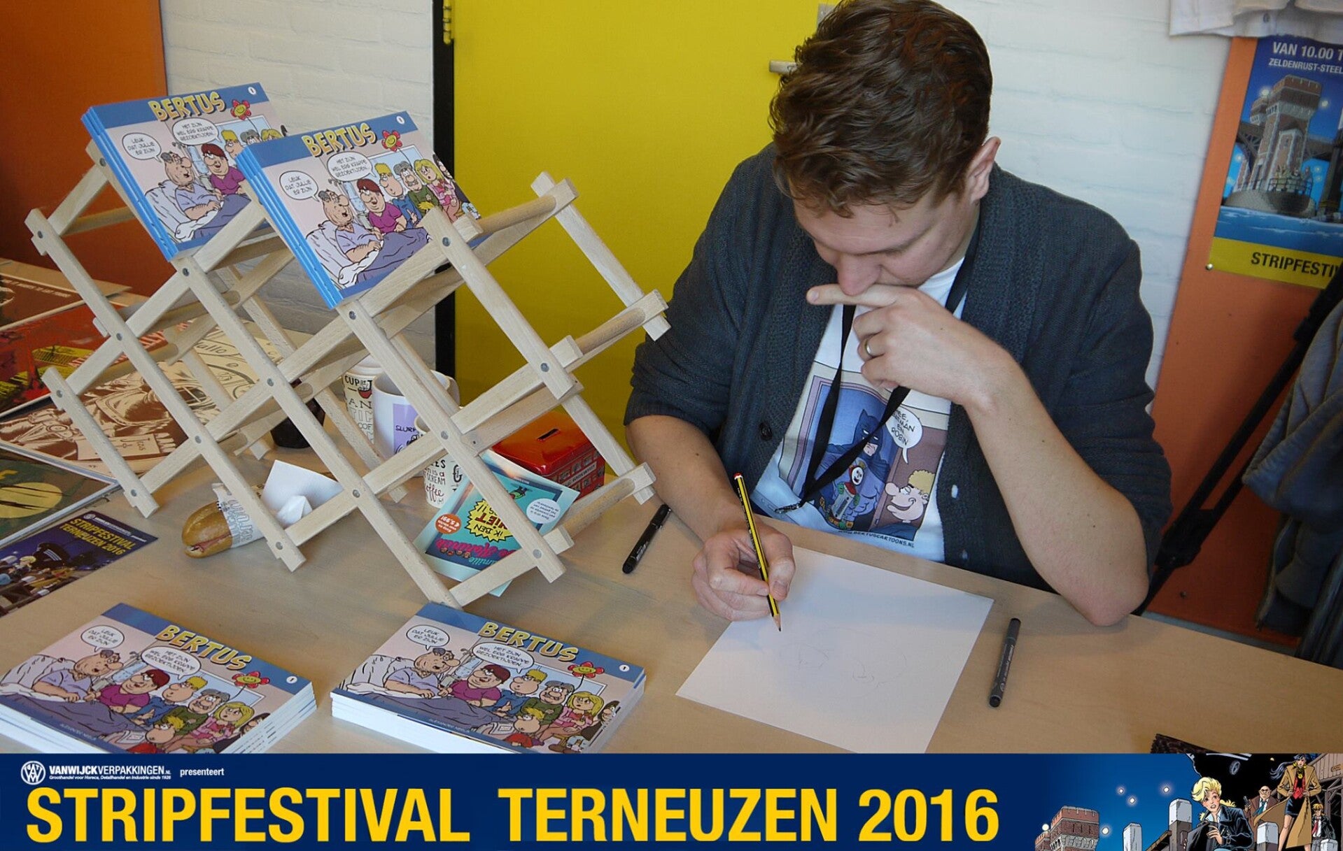 Het duurt lang voordat het eerste Bertus-album verschijnt. De cartoons en de strips worden in de jaren ervoor vooral via Facebook met de wereld gedeeld. Maar in 2016 vindt de eerste editie van het Stripfestival Terneuzen plaats. En tijdens dat festival verschijnt het allereerste album. Het wordt uitgegeven in eigen beheer. Een jaar later vindt opnieuw het Stripfestival Terneuzen plaats. En omdat er voldoende materiaal was voor een nieuw album, verschijnt het tweede album al een jaar later in 2017.